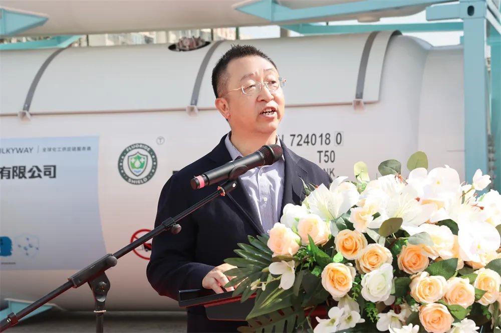 上午10點(diǎn)58分,下線儀式準(zhǔn)時(shí)開始,中集環(huán)科季國祥總經(jīng)理代表制造商致辭,他表示,密爾克衛(wèi)、大金氟化工、中集環(huán)科分別作為化工倉儲(chǔ)物流、精細(xì)化工、能源化工物流裝備領(lǐng)域的佼佼者,不忘各自肩負(fù)的使命和責(zé)任,敬畏環(huán)境,敬畏生命,在綠色發(fā)展、低碳發(fā)展、可持續(xù)發(fā)展方面取得了令人驕傲的成績(jī),作出了敢想敢為的表率。本次下線的氣體箱產(chǎn)品采用了創(chuàng)新的新材料、新工藝,在筒體和框架采用了大金氟化工新一代4F型高固體分、低VOC環(huán)保氟碳樹脂油漆,具有超長(zhǎng)耐候、優(yōu)良的防腐性能;同時(shí),罐內(nèi)也率先采用了氟盾水性漆,與傳統(tǒng)的鍍鋅工藝相比,不僅兼容性能更好,而且更加綠色環(huán)保,也便于日后維護(hù)。這些新技術(shù)的應(yīng)用淋漓盡致地體現(xiàn)了三家企業(yè)在追求綠色發(fā)展、低碳發(fā)展上相同的理念和作出的努力,中集環(huán)科非常榮幸未來繼續(xù)與密爾克衛(wèi)、大金氟化工一起成長(zhǎng),成為全球化工物流綠色發(fā)展、高質(zhì)量發(fā)展的倡導(dǎo)者和創(chuàng)新者。