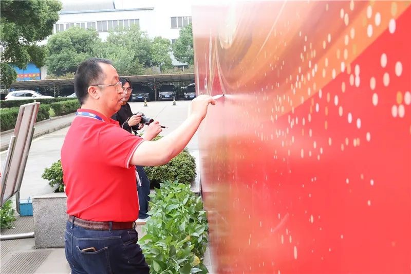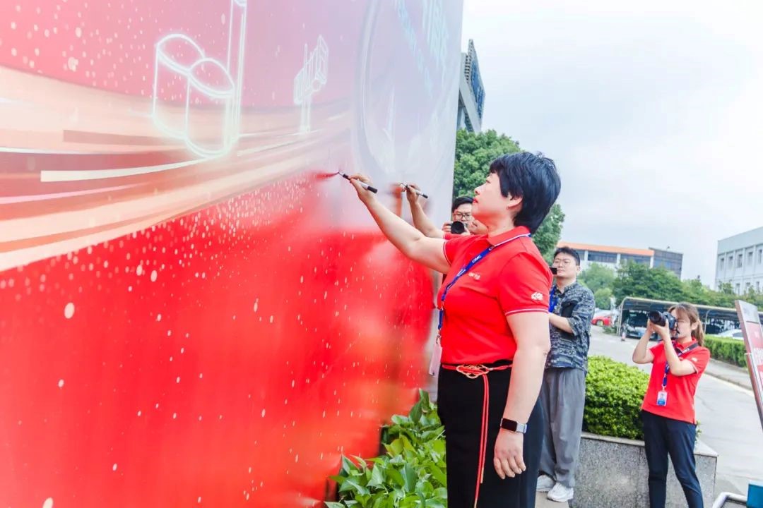 最后,南通中集兩板塊各公司管理部領(lǐng)導與員工在“中集日”主題背景板上簽名、合影留念,表達對中集集團、對公司未來發(fā)展的期許和祝福。