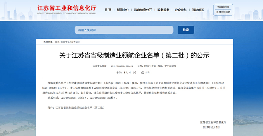 此次入選,標(biāo)志著公司在推動制造業(yè)高端化、數(shù)智化、綠色化發(fā)展進程中,綜合實力已躋身代表江蘇制造核心競爭力的 “第一方陣”。未來,公司將繼續(xù)以新質(zhì)生產(chǎn)力賦能高端制造,進一步提升企業(yè)全球競爭力以及產(chǎn)業(yè)鏈的引領(lǐng)整合能力,在服務(wù)國家戰(zhàn)略、推動區(qū)域經(jīng)濟高質(zhì)量發(fā)展中展現(xiàn)更大作為。